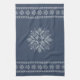 Winter holidays snowflake, vintage embroidery snow, white snowflake knotwear pattern in blue background