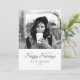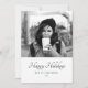 Stylish and modern personalized Christmas holiday photo card. The card is in white, grey and black colour scheme. Happy holidays wish, your personal note and a year number are in trendy black script. Insert your favourite photo into the template on the front and on the backside - black and white photo matches very well with the design. You can add one or two different photos - the photo on the backside is a zoomed in. Personalize this card with your name and year number. It`s a great design for single people, boyfriend, girlfriend, family, couple, ...