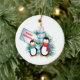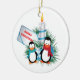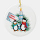 Christmas Cute Penguins And Candle custom ornament. Two cute penguins with scarves and behind them a candle and pine needles.