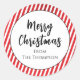 This design features Christmas holiday red simple cute, minimalist minimal gift party favour, fun classic striped stripes stripe, candy cane stripe red white, cute whimsical typography text font, chic festive colourful Xmas, stylish calligraphy script family name, trendy minimal modern style, simple Christmas sticker label, Christmas holiday party supplies
