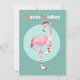 Cute and funny pink flamingo in striped socks scarf and Santa hat pink and mint pastel colours illustration. Striped letters supplement this design