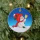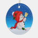 Brighten up your Christmas tree and give a touch of warmth and excitement of the holidays to your Christmas decoration with this charming circle ceramic Christmas tree ornament. Featuring a cute snowman holding a gold christmas bell on a white snowy field, bright winter blue sky and beginning of snowfall, this charming ornament is a perfect way to commemorate the holiday season with your family and makes a great gift for all of your loved ones.