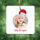 Christmas Cute Whimsical Santa Hat Photo Ceramic Ornament
