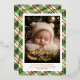 Celebrate your baby's first Christmas with friends and loved ones with our adorable "Christmas Cutie" card. The design features baby's photo adorned with a gold foil frame and typography design on a green, red and cream plaid background. Information and photograph can be edited by selecting "personalize this template". If you have any questions or requests regarding this design, please feel free to contact us via the chat; we’d be happy to help!