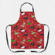 Cute Christmas dachshund dogs with black, tan and dapple coats dressed in festive holiday outfits, Santa hats and argyle sweaters with scattered Christmas ornaments pattern.