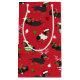 Christmas Dachshunds Gift Bag, Cute Dachshund Dogs in Festive Holiday Outfits with a Red Background.