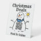 Christmas QR Code Sign. Find us online. Image is a Snowman with QR Code. Christmas Deals.