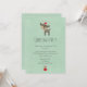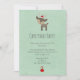 A cute and festive holiday Christmas party invitation with a hipster minimalist feel. At the top of the invite is a charming illustration of a brown woodland deer wearing a red santa hat - hipster style. Personalize with your party details. A little red Christmas decoration is at the bottom. Set on a retro green background.