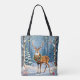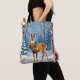 A really sweet holiday tote bag with a festive deer standing in a festive winter wonderland enchanted forest decorated in Christmas fun! Fill it with gifts and use it as a reusable gift bag!