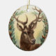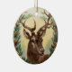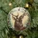 CHRISTMAS DEER,PINE CONES CROWN,RED GREEN GEMS CERAMIC ORNAMENT