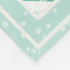 This cozy Christmas fleece blanket design features diagonal stripes in mint green, white and red on a mint green background scattered with snowflakes and stars. Search ID440 to see other coordinating products and additional colour options for this design.