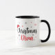 Modern Christmas mug for any sassy Diva. The quote "Christmas Diva" is in a lovely red and black modern script typography with a Santa's hat hanging on the "Ch" of Christmas. Beautifully surrounded by charming snowflakes.