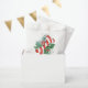 This adorable paper plate features a watercolored candy cane striped dog bone on a winter holiday bouquet. The text reads "Treats" then you can personalize with your dog's name below.