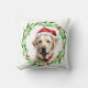 Holiday Christmas throw pillow with a watercolor Labrador Retreiver and watercolor Christmas wreath design. Add the dogs name to the design and it's the perfect gift idea for that lab lover you know, or yourself!