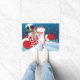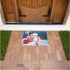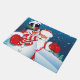 Welcome doormat shown a cute Christmas print of santa and frosty the snowman. Customize this item or buy as is.
