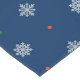 Festive winter design, adorned with delicate snowflakes and a scattering of small red, blue, and green dots. The background of the tote is a neutral colour, providing a subtle backdrop for the wintery elements. Graceful snowflakes dance across the surface, creating elegant atmosphere. Scattered among the snowflakes are small, vibrant dots in shades of red, blue, and green, without overwhelming the overall design.