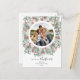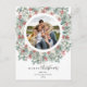 This elegant design features your custom family photo beautifully encased within a stunning watercolor botanical round frame. The lush, hand-painted foliage in rich greens and festive hues creates a warm and inviting ambiance, perfectly complementing your holiday decor.
