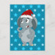 Design with illustration of cute little smiling elephant with Santa's hat, Christmas holidays design for children, on background with seamless blue pattern with stars