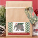 These trendy and cute Christmas elephants, a parent and little baby elephant, are returning home with their perfect Christmas tree. Both are totally in the holiday spirit with matching Santa hats! The rest of the design features a green chevron design, and a red rectangle at the bottom. Thin lines of gold foil decor line the edges. (Please note the item will not contain actual gold foil, just the look of it.) The bottom of the design says "Merry Christmas", but you can easily change the message by using the template.