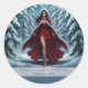 Christmas Elf in Red in Winter Forest Magnet Card Classic Round Sticker