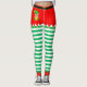 Christmas Elf & Jingle Bells on Green and White Leggings