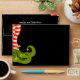 Striped elf legs with green boots are on the front and inside flap on these black A7 envelopes and feature your FREE return address on the back flap. Fits a 5" x 7" invitation or change to the size you need. MATCHING invitations and other items in our collection.