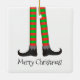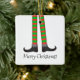 Merry Christmas! A ceramic ornament with a Christmas elf legs, striped costume version. Customize the ornament with your own text among other options.