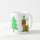 Merry Christmas! A mug with a Christmas elf, striped version. Customize the mug with your own text among other options.