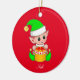 Christmas Elf on Red Ceramic Ornament