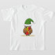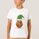 An illustration of a shy happy elf owl with green santa hat and red present with yellow ribbon. This cute cartoon design is a gift idea for owl lovers, bird lovers, and fantasy or magical movie lovers. Are you excited to receive your gift on Christmas?