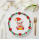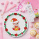 Christmas Elf, pine wreath, poinsettias & balls P Paper Plate