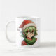Cute portrait from a Christmas elf with green hair in Japanese anime style