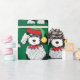 Cute Cartoon Black & White Sheepadoodle Puppy wearing green Elf hat and red elf collar. Adorable sheepadoodle green holiday wrapping paper!