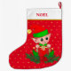 Christmas elf, stars, poinsettia and pine on red large christmas stocking