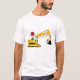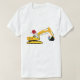 A cute illustration of a yellow toy excavator wearing a Santa hat and decorated in Christmas lights digging up some Christmas gifts. Perfect for construction truck lovers of all ages. An ideal Christmas t-shirt for excavator truck enthusiasts big or small, girls or boys.