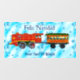 A repurposed German Marklin O scale model steam engine and passenger car, circa 1940's. The engine has been digitally given a new colour scheme for Christmas while retaining its character. Spanish text reading, "Feliz Navidad" also appears. Add your own additional text.