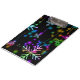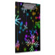 Christmas falling various neon colours snowflakes SlipperyJoe artistic gay pride gifts LGBTQIA dark background vibrant winter vibrant colourful digital illustration blue green pink yellow multicolored bokeh lights festive lively atmosphere depth dimension hanging thin lines black background
