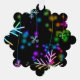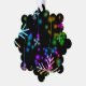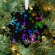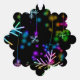 Christmas falling various neon colours snowflakes SlipperyJoe artistic gay pride gifts LGBTQIA dark background vibrant winter vibrant colourful digital illustration blue green pink yellow multicolored bokeh lights festive lively atmosphere depth dimension hanging thin lines black background