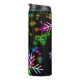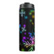 Christmas falling various neon colours snowflakes SlipperyJoe artistic gay pride gifts LGBTQIA dark background vibrant winter vibrant colourful digital illustration blue green pink yellow multicolored bokeh lights festive lively atmosphere depth dimension hanging thin lines black background