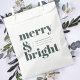 A stylish modern holiday favour bag with a bold retro typography quote “merry & bright” in forest green on a simple white background. This trendy design blends minimalist style with festive cheer, creating the perfect finishing touch for your Christmas celebrations. The greeting, message, and name can be easily customized to make each bag personal and unique. Ideal for party favours, small gifts, wedding treats, or office giveaways, this versatile design adds a joyful touch to any holiday event. Whether you’re hosting a family gathering or seasonal party, this modern white paper bag brings a bright, fun, and contemporary vibe to your holiday gifting.