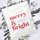 A stylish modern holiday favour bag with a bold retro typography quote “merry & bright” in bright red on a simple white background. This trendy design blends minimalist style with festive cheer, creating the perfect finishing touch for your Christmas celebrations. The greeting, message, and name can be easily customized to make each bag personal and unique. Ideal for party favours, small gifts, wedding treats, or office giveaways, this versatile design adds a joyful touch to any holiday event. Whether you’re hosting a family gathering or seasonal party, this modern white paper bag brings a bright, fun, and contemporary vibe to your holiday gifting.