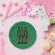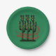 A graphic illustration of cactus trees with lights on Christmas Fiesta party plates.
