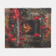Christmas Fireplace Pinecones Red Candles Fleece Blanket