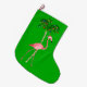 holiday tshirt will keep you in a tropical mood. Gorgeous pink flamingo wearing a Santa Claus hat with a Christmas decorated palm tree.
