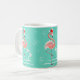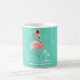 Stylish design with a retro touch featuring a festive pink flamingos wearing red Santa hats, stars and palm trees decorated with baubles set against an aqua background. A customizable design for you to personalise with your own text, images and ideas. An original digital art image created by Quirky Chic.