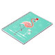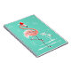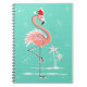 Stylish design with a retro touch featuring a festive pink flamingo wearing a red Santa hat, stars and palm trees decorated with baubles set against an aqua background. A customizable design for you to personalise with your own text, images and ideas. An original digital art image created by Quirky Chic.