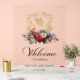 Christmas Floral Crest Monogram Wedding Welcome Acrylic Sign