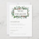 This stunning Christmas foliage pine cone engagement party card features holiday greenery with a faux gold frame on a modern white and green background.