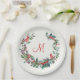 Christmas foliage, holly, Cardinal bird Monogram Paper Plate