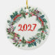 Christmas foliage, holly, cardinal ceramic ornament